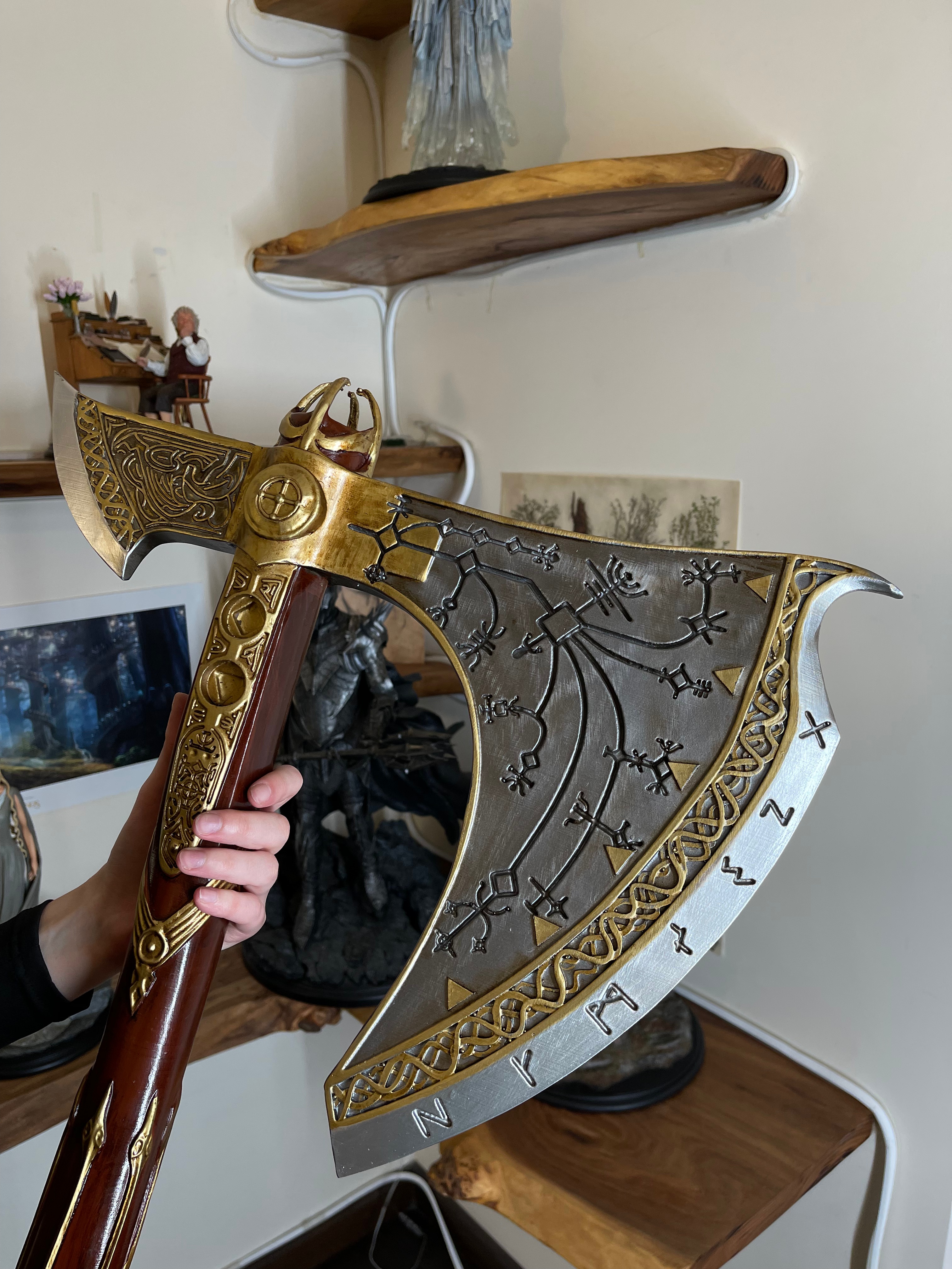 Реплика выполнена с максимальной детализацией: металлические руны, текстура дерева, вес, близкий к оригиналу. Эффектный, внушительный, мифический — топор, который хочется держать в руках!